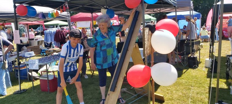 'Splat the rat' was a different venture for us and Cheryl's grandson certainly enjoyed having a go. Val's 'bag tags' were very popular too.